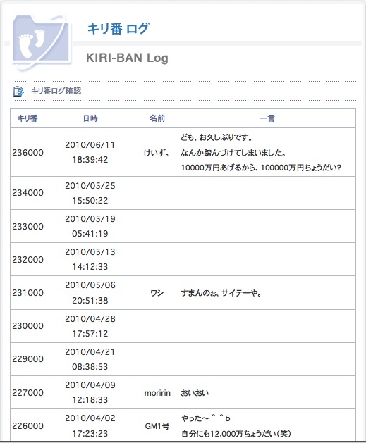 シャイな方が多いようで、キリ番ゲットしても、