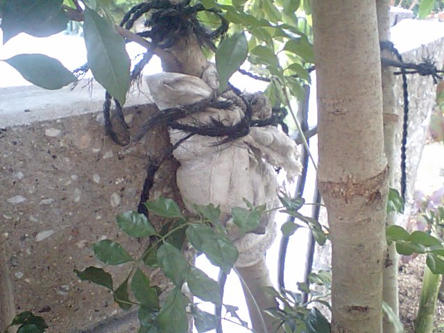 折れかけの枝、テープで修復したの。