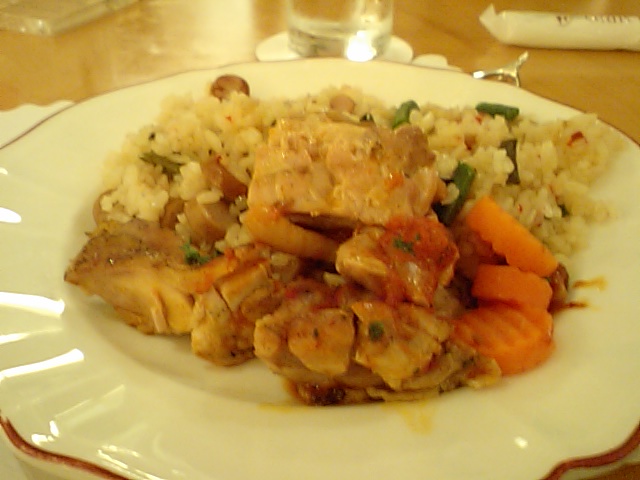 ソーセージピラフの下にはチキンの何チャラ。