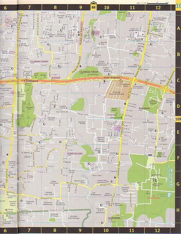 ジャカルタおよびジャカルタ近郊道路地図。