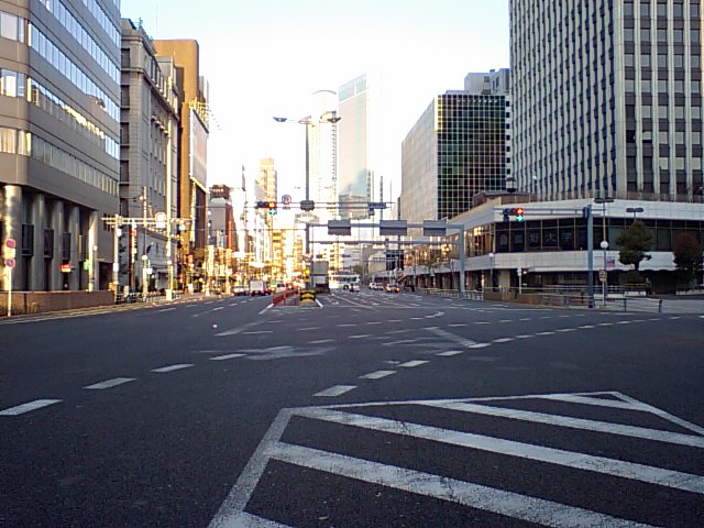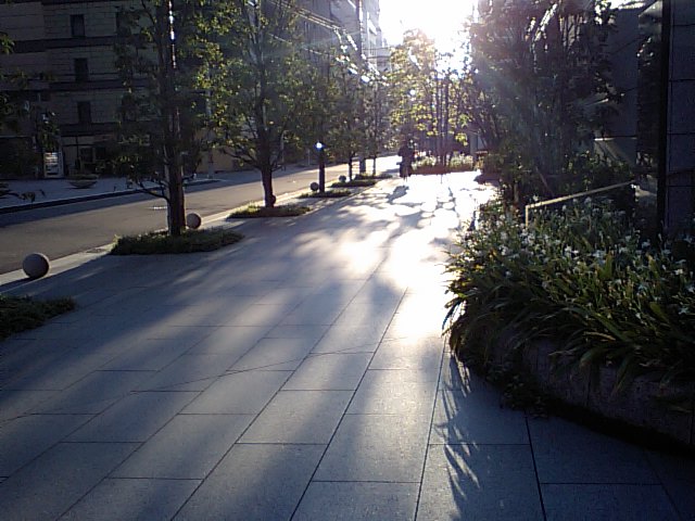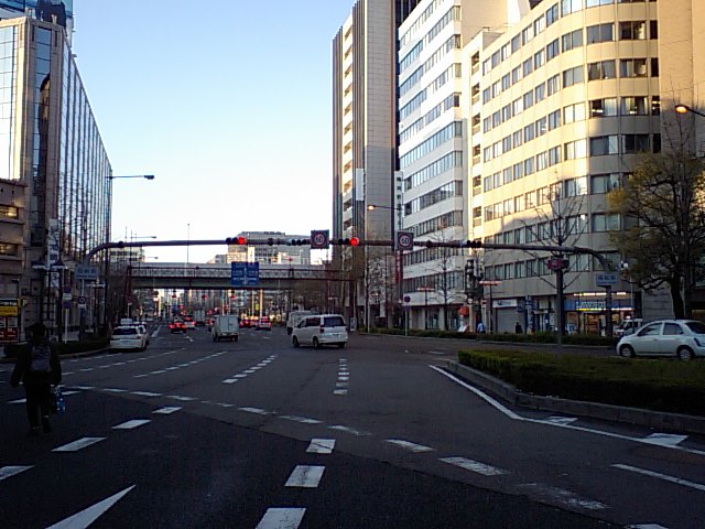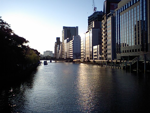 市庁舎の散歩道。土佐堀川。