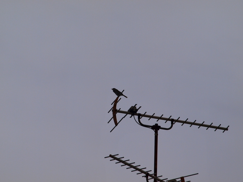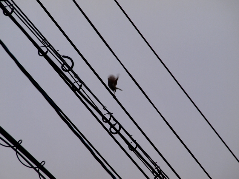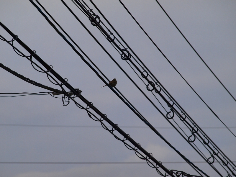 鶯に、電線やアンテナは似合わんなぁ。