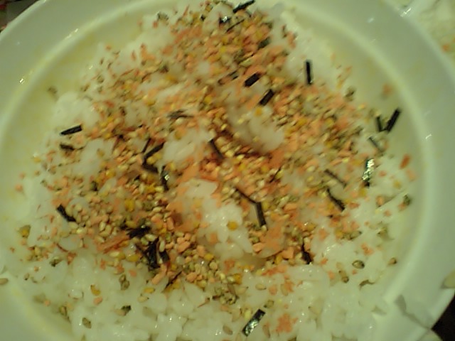 ごはん2杯、たまご1個、海苔3つ、ふりかけ少々。