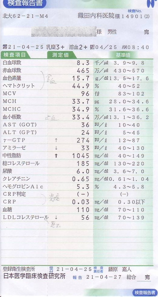 中性脂肪が高いのも前日酒を飲んだから・・・