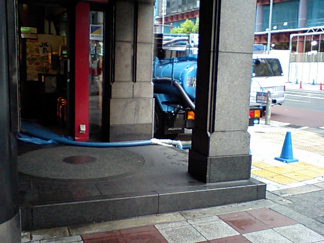 この汲み取り車を撮る頃はまだ振ってなかったが・・・