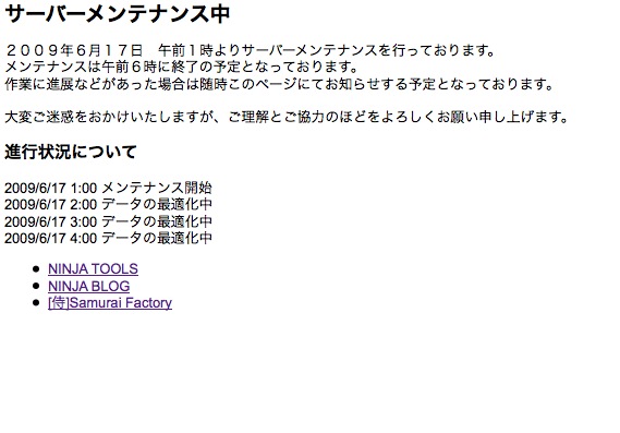 メンテ開始1日前から、Blogにアクセスすると