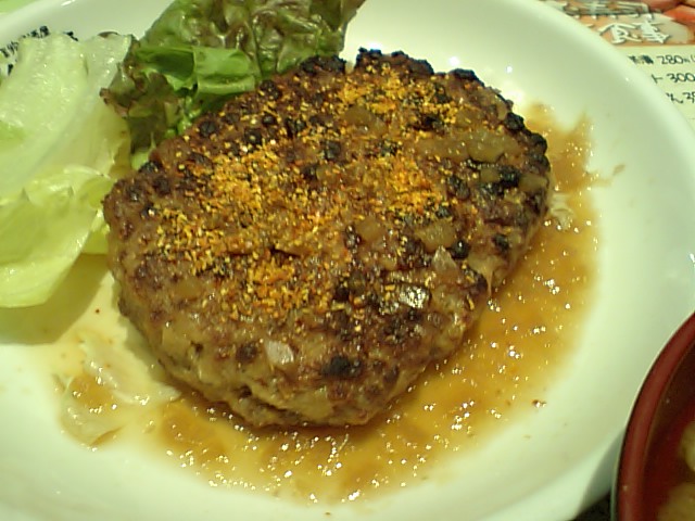 ハンバーグの味がピリリと閉まります。だあけみ。