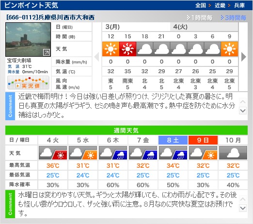 3日は近畿一円で晴れ間が広がり、同気象台によると、最高気温は京都市で35度、大阪市で34度、奈良市で33度まで上昇する見込み。