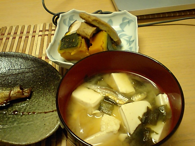 我が家のミソズッペは、出汁の小魚入り。