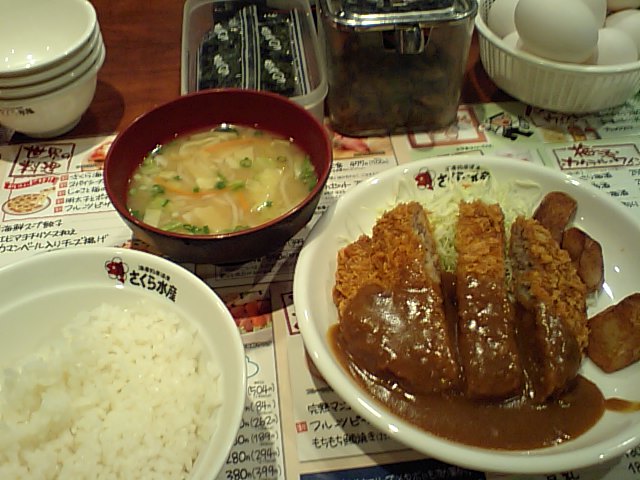 メンチカツカレーソースかけ一味ぶっかけ