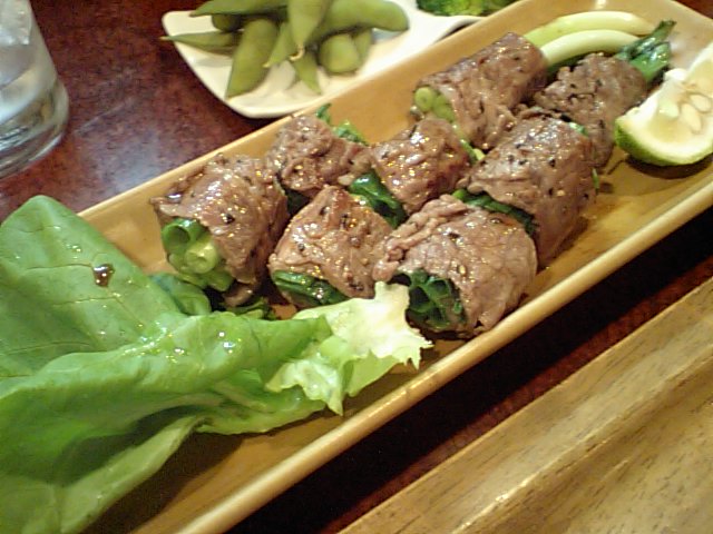 肉のネギ巻き。