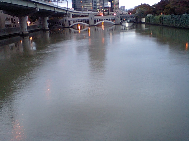 堂島川も緑色。