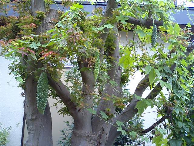 楓と思っていたのは完全にワタクシメの早とちりで、実はゴーヤの木でした。