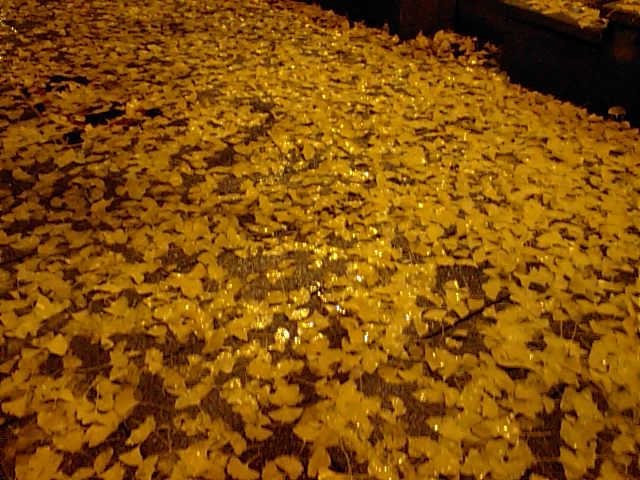 黄色い絨毯も、濡れ落ち葉・・・