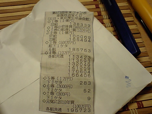 1月5日以降に宝くじ売り場に行って確認すべし。