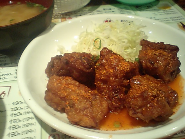 鶏唐揚げチリソース和え一味ぶっかけ