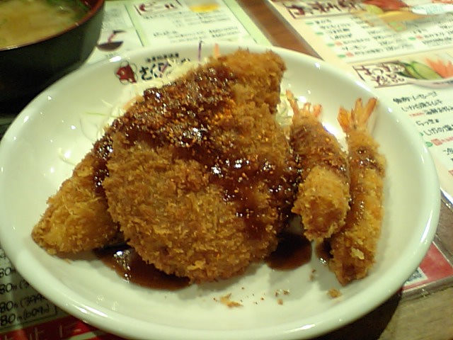 タラフライ・メンチカツ・エビフライ盛合せ一味ぶっかけっ