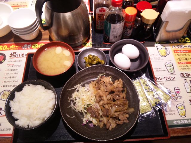 豚肉の生姜焼きたまご一味ぶっかけっ+青野菜