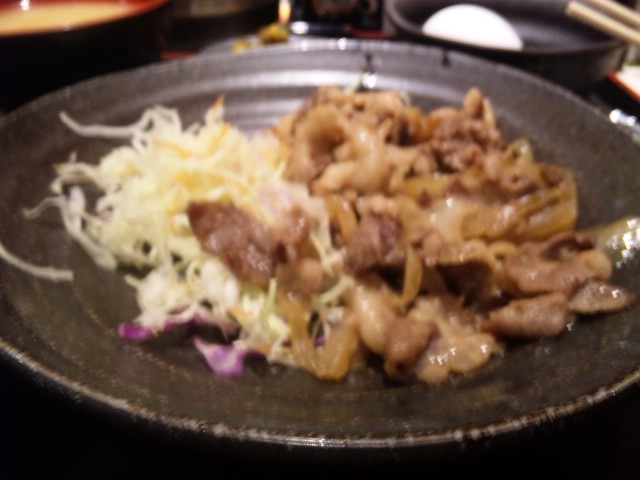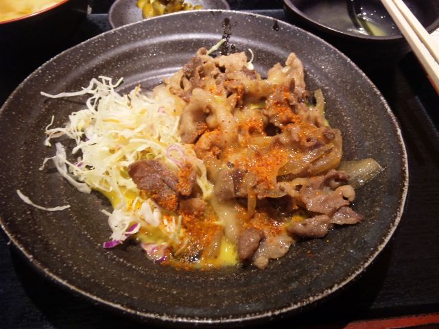 豚肉と玉葱の生姜炒めたまご一味ぶっかけ