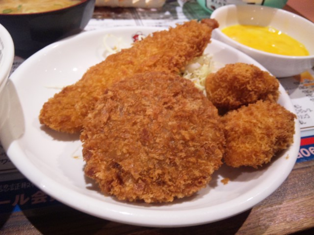 タラフライ・メンチカツ・貝柱フライ盛り合せっ