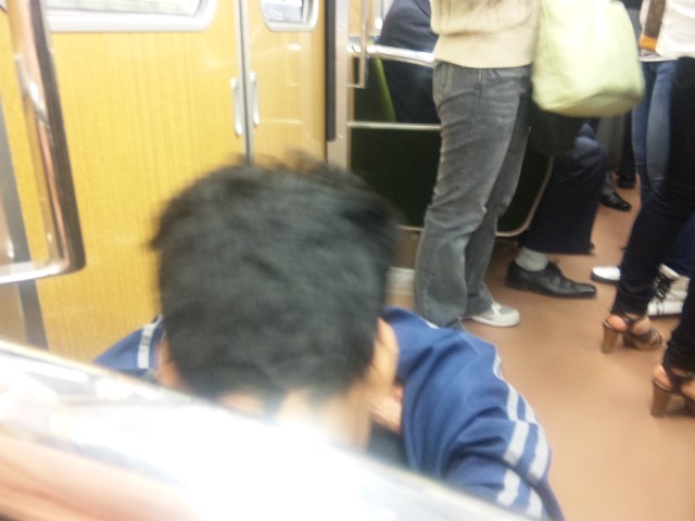 青少年がヨウサン乗ってる阪急車内で、