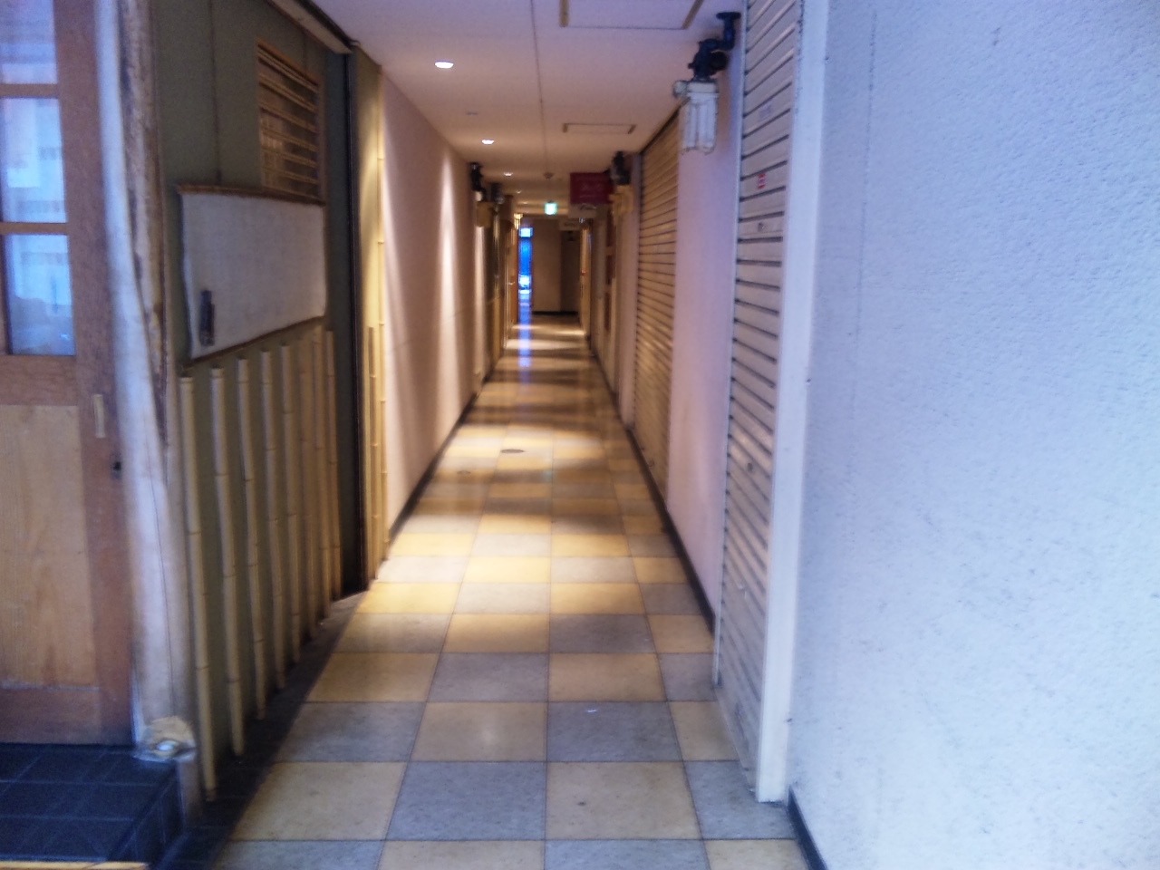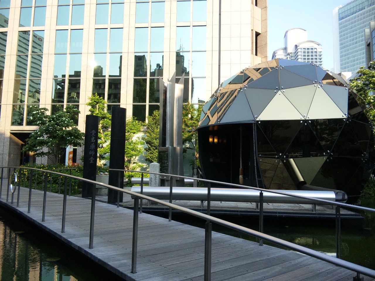 飲み屋ビルと薬師堂。