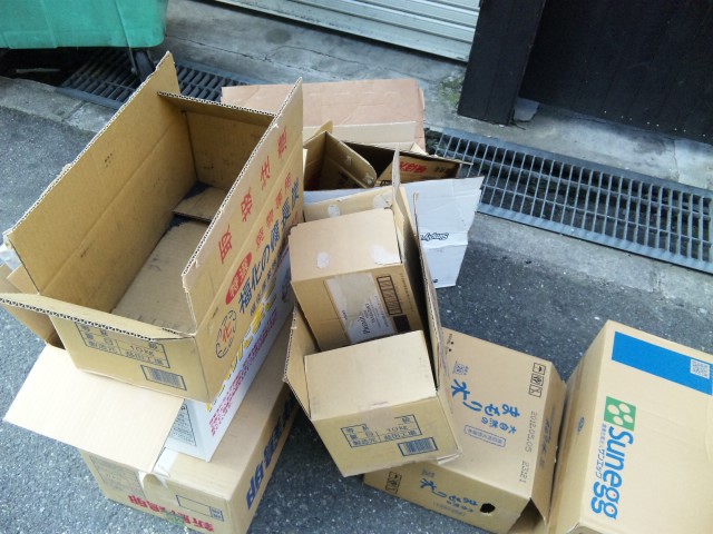 銀行、ダンボール。