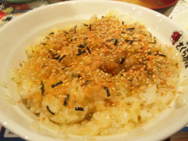 ふりかけテキトーっ、一味気持ちだけっ、辣油タラ~~リっ