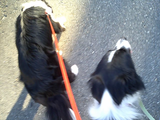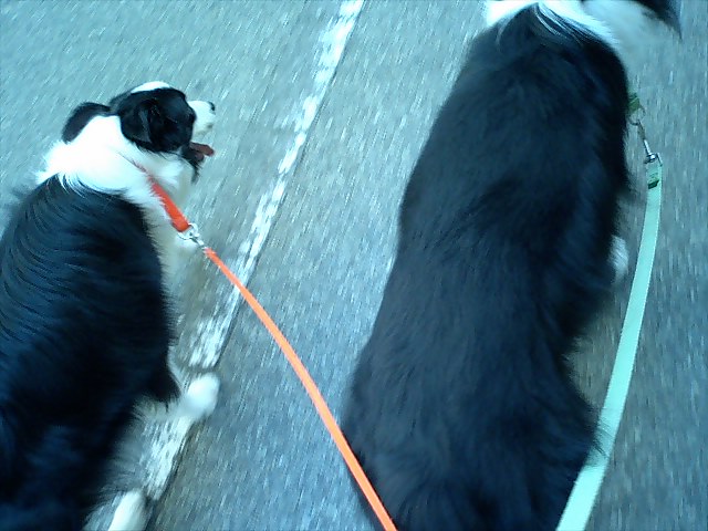 Clip君は、オリコウに脚側。(緑のリード)