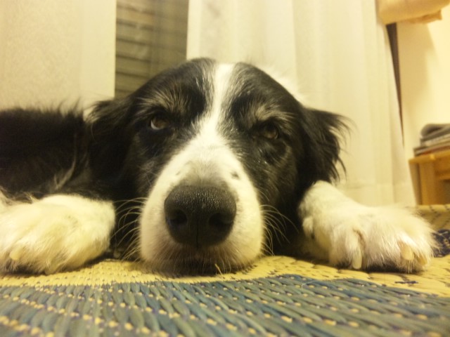 玄関、ション浸し。