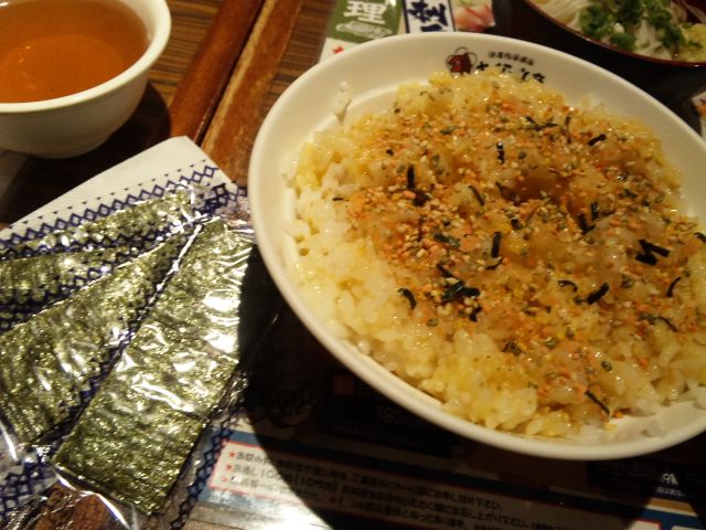ふりかけチョロチョロっ、一味パラパラっ、辣油ドッバ~~っ