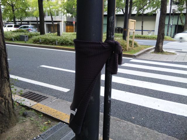 茶色いニットを着せられた、茶色いポール。