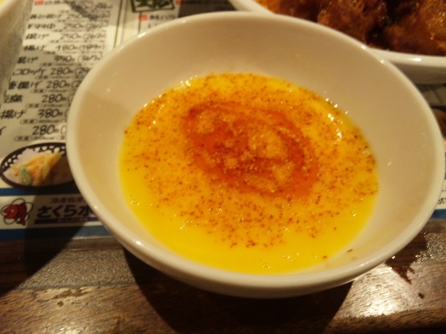 鶏の唐揚げチリソース和え一味七味ぶっかけたまご落としっ