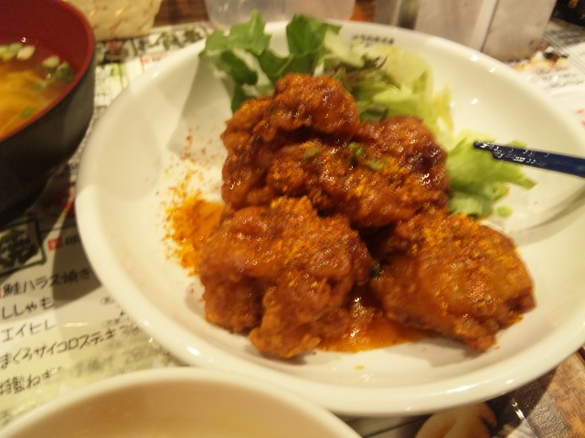 鶏の唐揚げチリソース和え