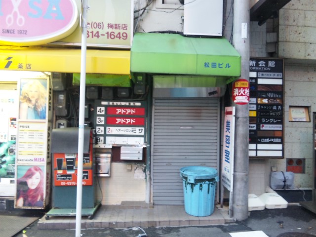 御堂筋からお初天神に折れる角っこ、薬屋の裏。