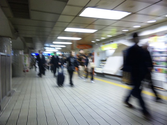 京阪から御堂筋線へ向かう人の波。細波程度やけど。