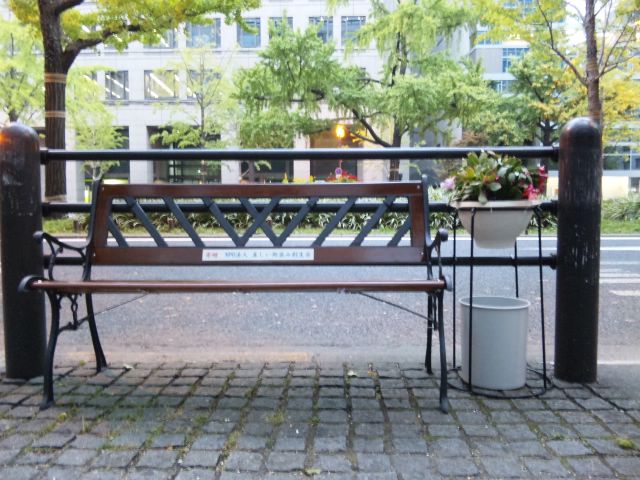 道修町バス停脇のベンチ。