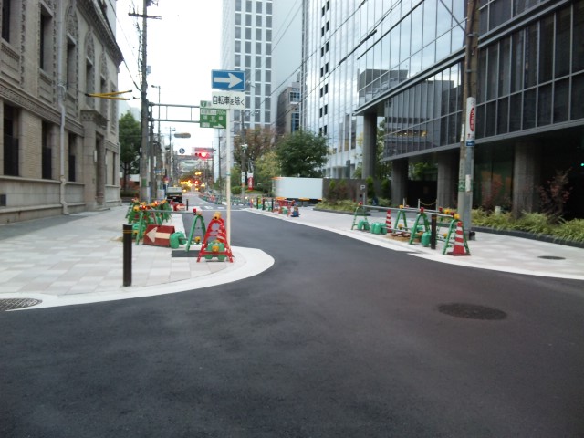 平野町2丁目、右は登録文化財の小川香料ビル。