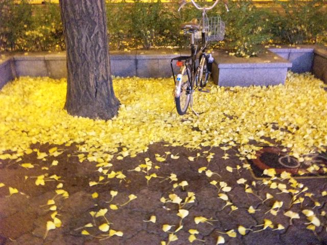 梅新東のチャリも葉っぱに埋まって遭難中。