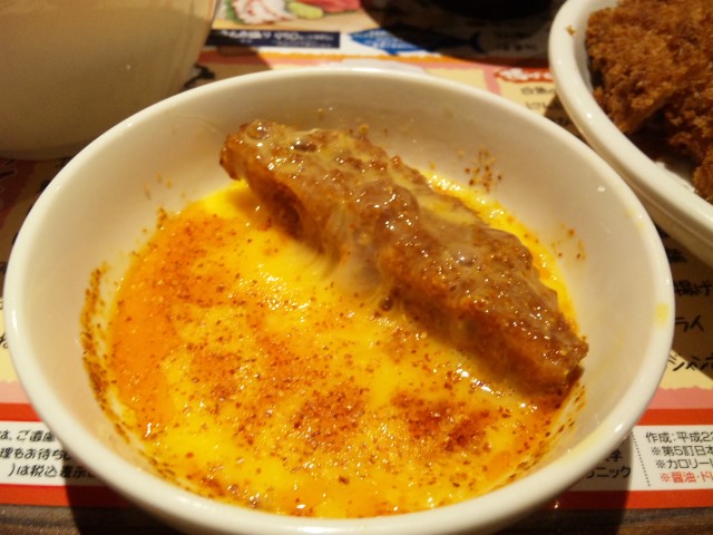 ジャンボチキンカツ一味辣油マジェマジェたまご浸しっ