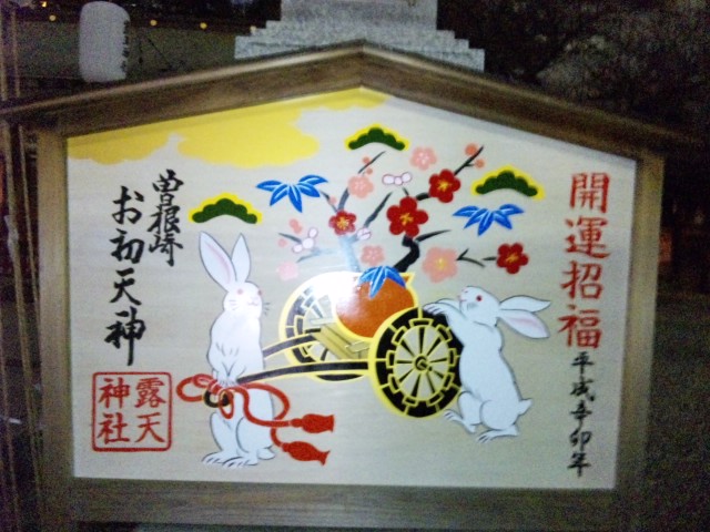 巨大絵馬、後の2枚はライト点灯。