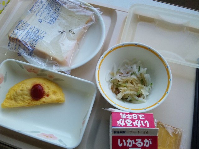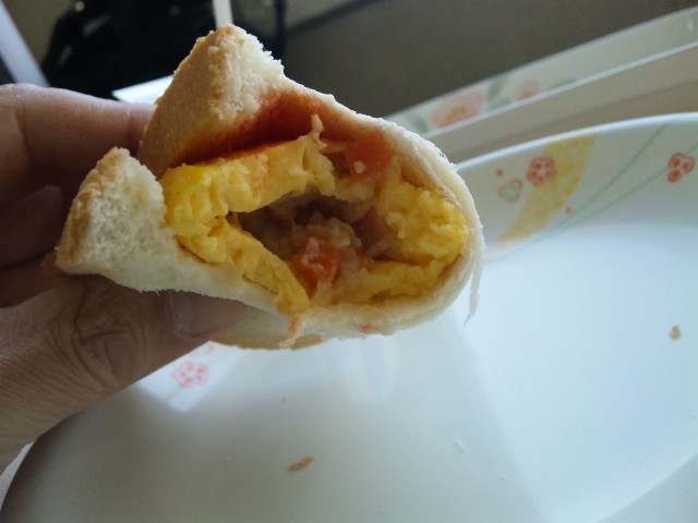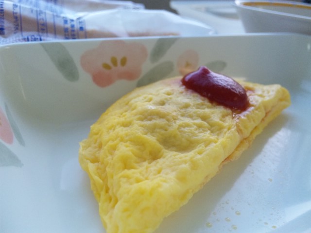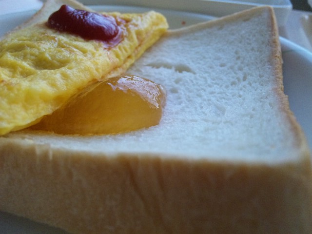 オムレツ、薄っぺらなサンドパン故サンドに。