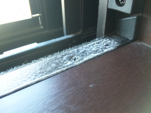 結露が凍っとるがな。