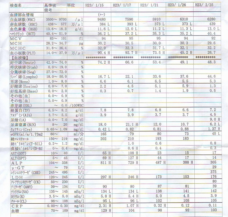 治療の副作用で腎臓データ上がったか(お医者曰く)。