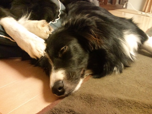 Clipの前足を頭にあてて 安心してねてるViVi