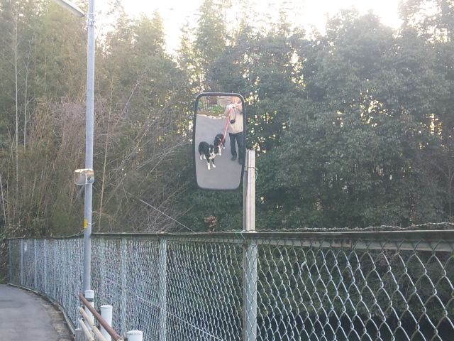 溜池の傍のミラー。ぎゃ。