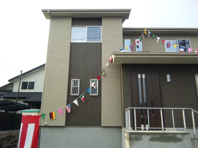 新築お披露目に万国旗ってのも珍しい。