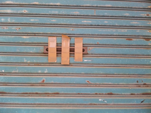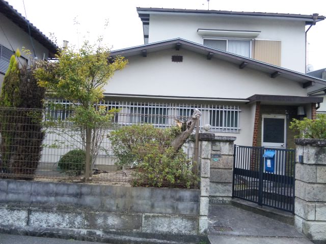 と、横に長い窓と一連の格子。民家??