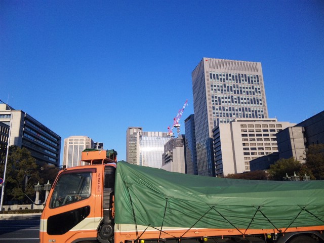 この時間、トラックに妨害されるのも珍しい。