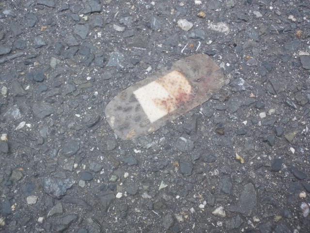 おいおい、道路補修材もシャレとるのぉ、最近は。